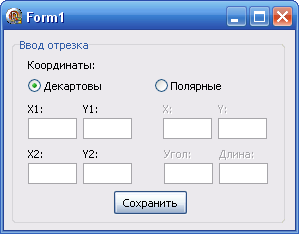 Ну а теперь перейдём к более знакомым вещам - сделаем интерфейс для ввода информации об отрезке и запрограммируем внесение всех данных в запись.